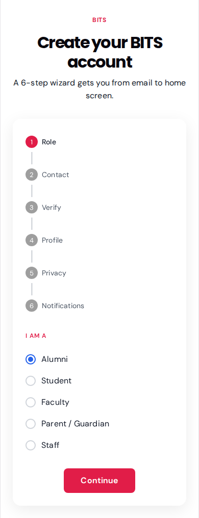 route: /auth/loginEntry step for self-serve signup; picks the primary stakeholder role before collecting details.