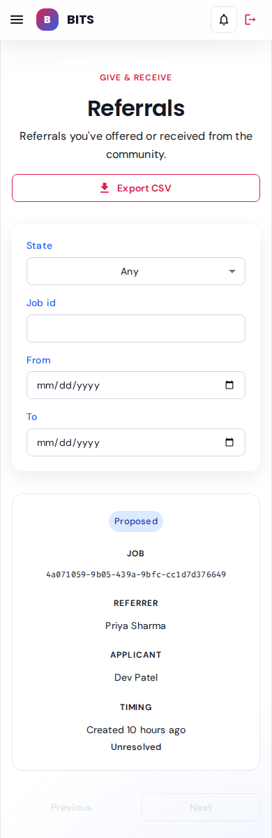 Priya owns 1 seeded referral — this view lists inbound referral asks she can accept or decline.